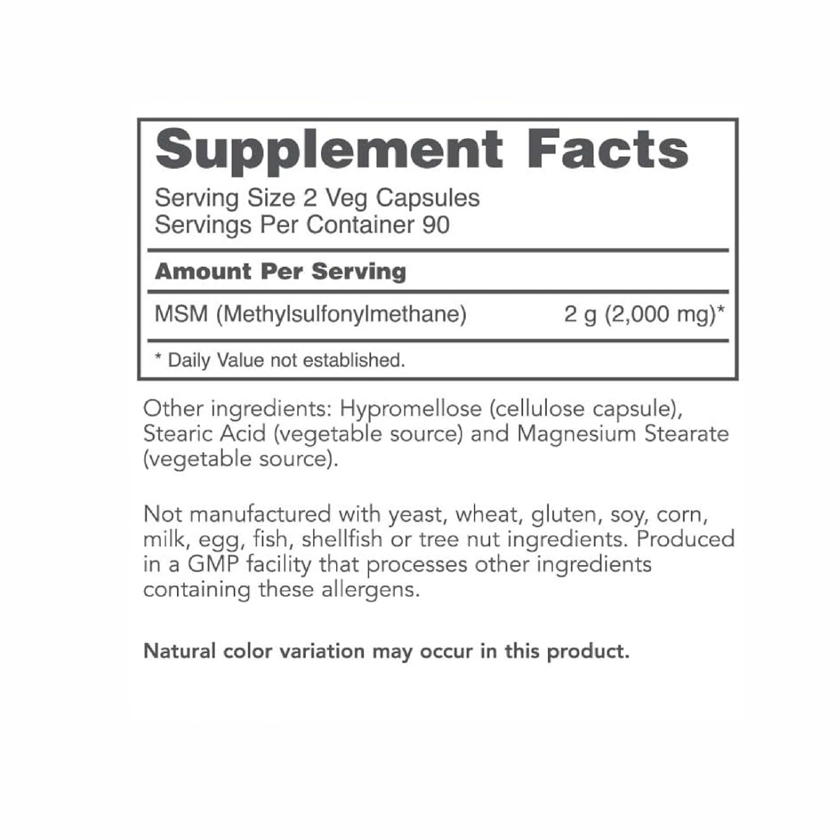 - MSM (Methylsulfonylmethane) โ 1,000 mg